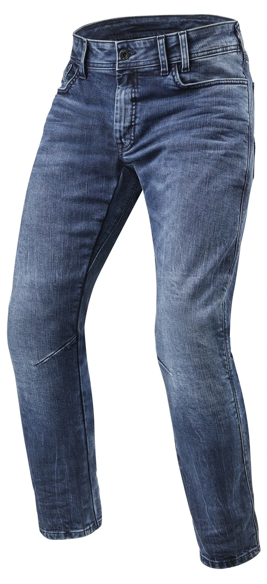 De REV’IT! Detroit is zo’n jeans waar je reikhalzend naar uitkijkt en inderdaad je zou het niet zeggen, maar het is een motorjeans. Compleet in washed stretch denim zoals je hem het liefst hebt. Door de verweving met Cordura is die over het geheel slijtvast, dat is aangesterkt met het eigen ontwikkelde PWR|Shield op zitvlak en knieën. De bescherming is afkomstig van de geprezen SeeSmart knie en heup protectoren die nauwelijks waarneembaar zijn. De Detroit komt in een relaxte Tapered Fit pasvorm waardoor dit zomaar een plekje in je favoriete rij-uitrusting verovert.
